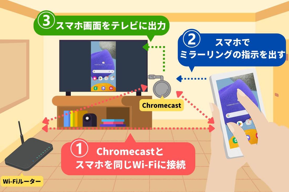 ChromecastはGoogleのデバイスで、Androidデバイスの画面をテレビにミラーリングすることができます。