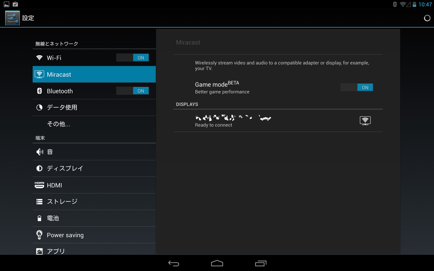 Miracastは無線技術で、Androidデバイスとテレビやモニターをワイヤレスで接続できます。
