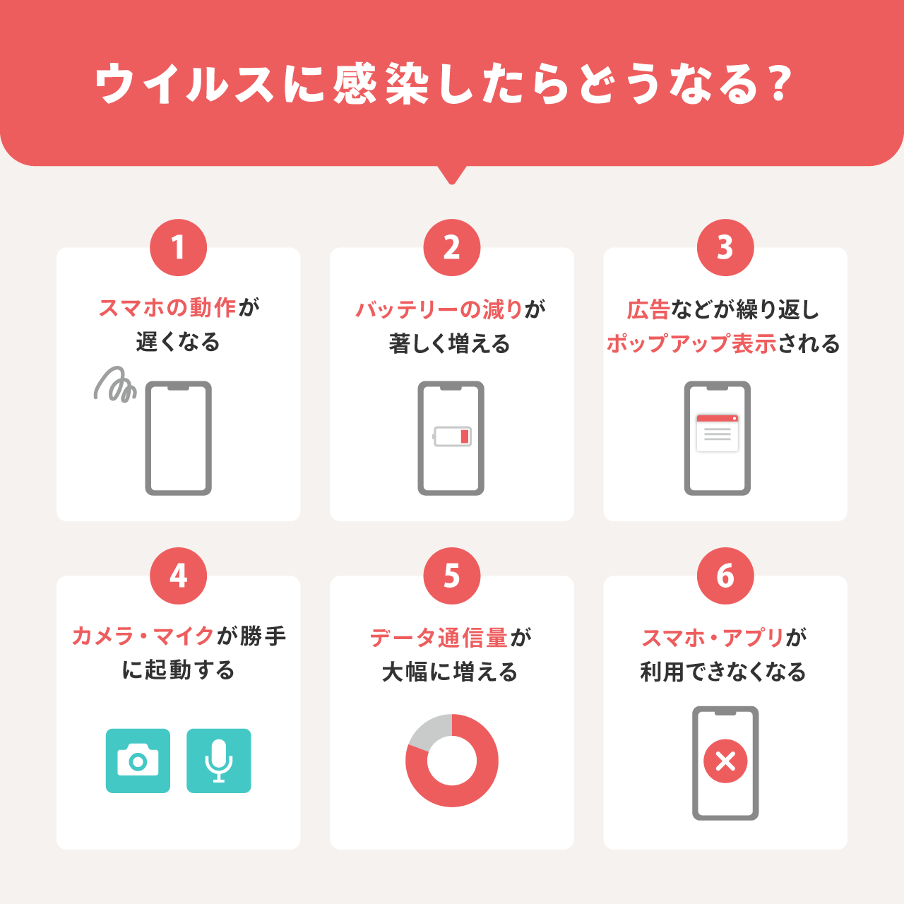 - デバイスの動作確認:デバイスの速度が低下している、バッテリーの消費が早い、予期せぬ広告が表示されるなどの症状が見られた場合、ウイルスに感染している可能性があります。