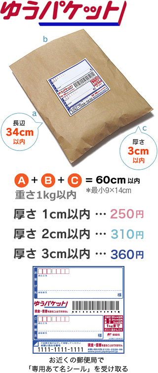 - 厚さ3cm以内の封筒や小包が対象
