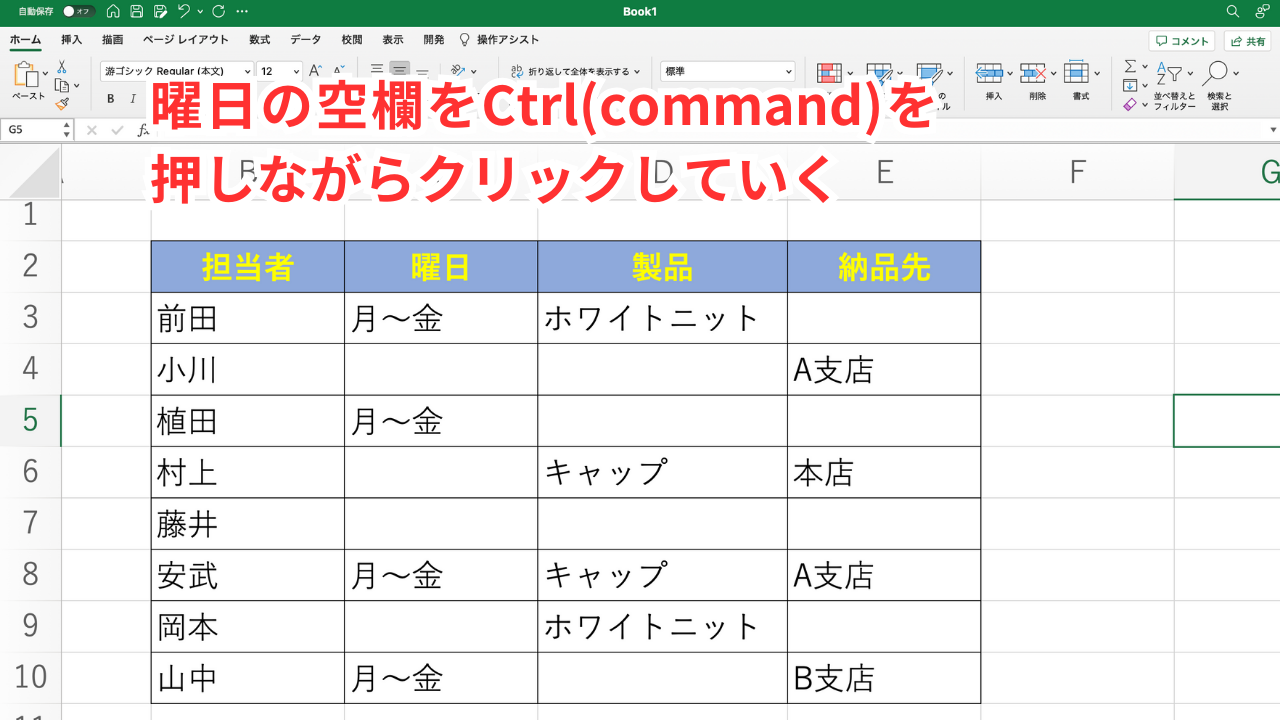 - 非連続範囲を選択:最初の範囲を選択し、Ctrlキーを押しながら他の範囲を選択します。