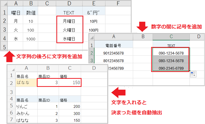 - TEXT関数は、日付や数値を特定のフォーマットに合わせて表示するのに便利です。